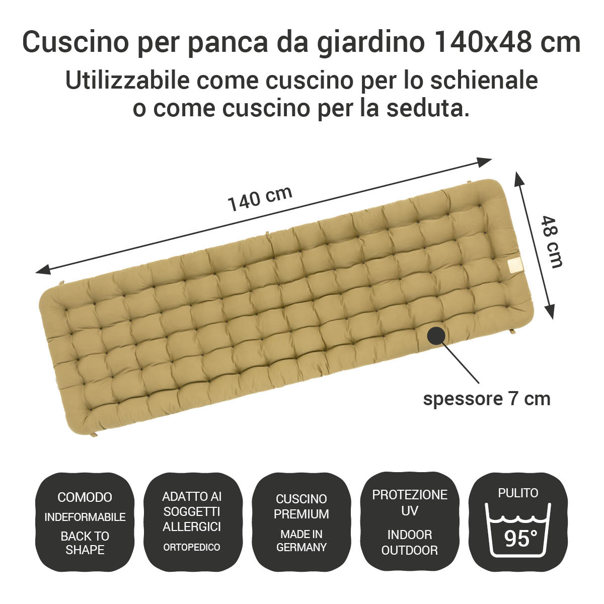 Cuscino per panca da giardino con schienale | 140x48 cm | Beige