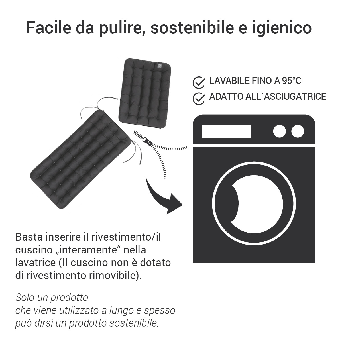 - Cuscino imbottito da giardino resistente ‐ igienico, facile da pulire, lavabile a 95°C /a datto all'asciugatrice.