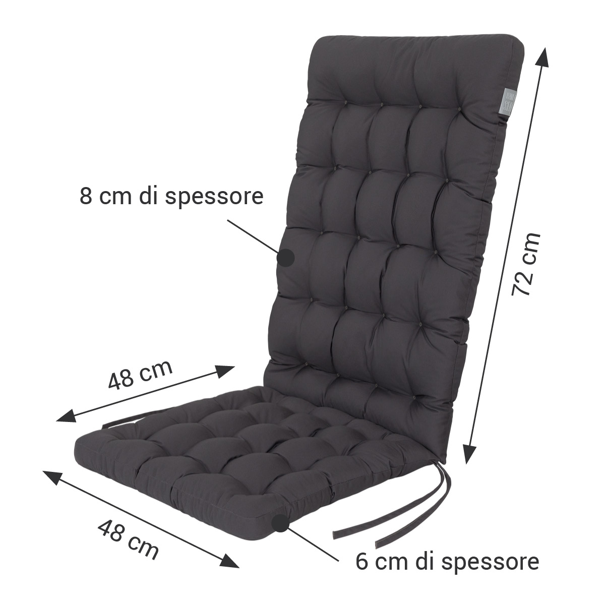 - Schienale: 72 x 48 cm, spessore 8 cm
