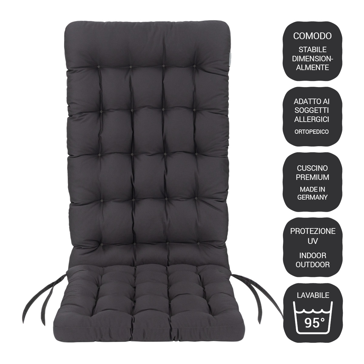 Cuscino per sedie con schienale alto 120x48cm | Grigio / Antracite | Set da 2 %
