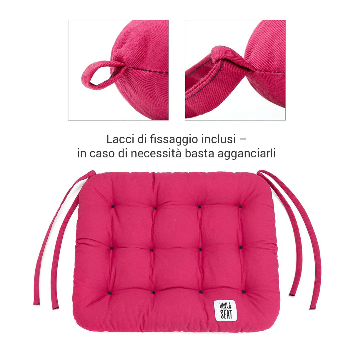 - Hochwertiges, modernes Stuhlkissen mit Bändern.