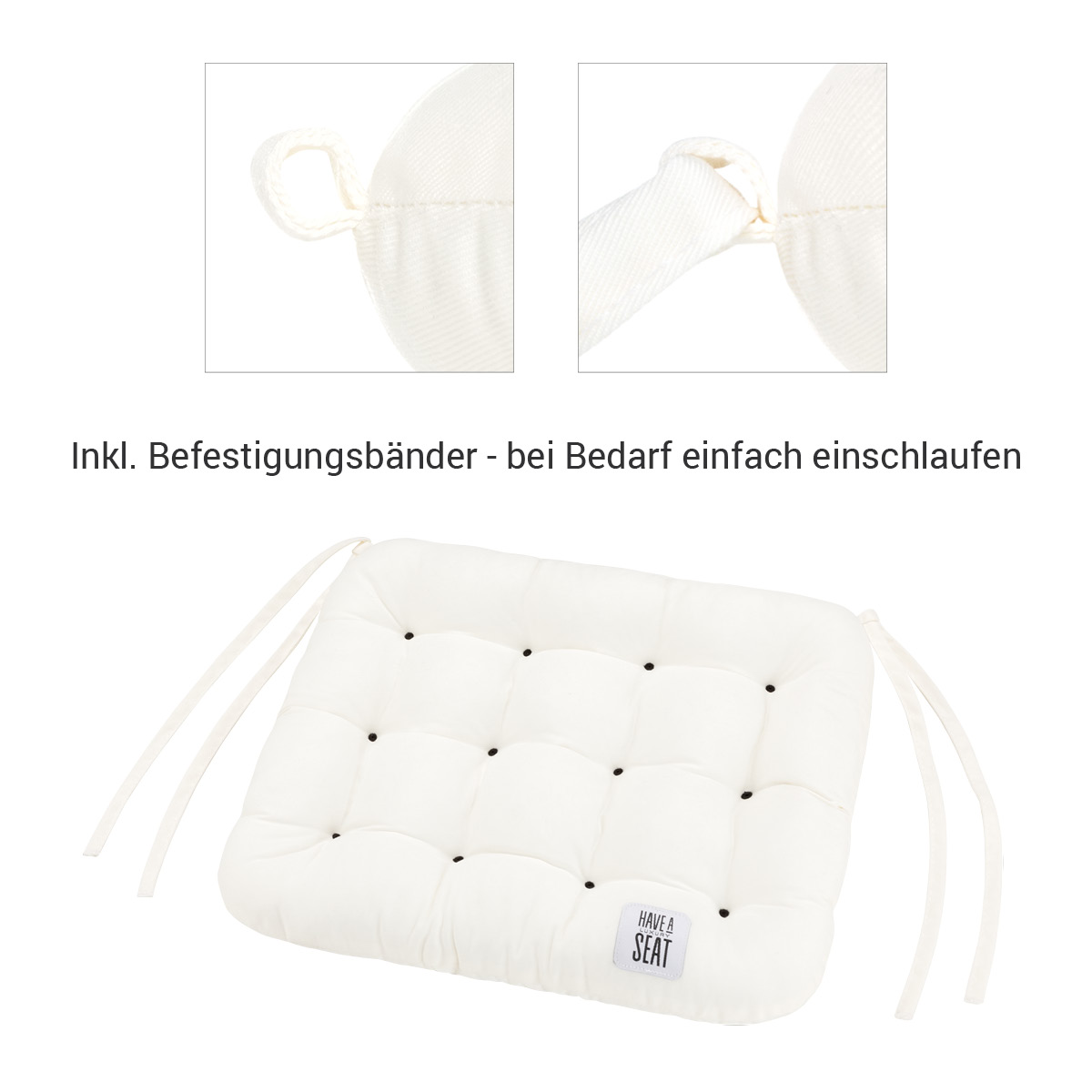 - Hochwertiges, modernes Stuhlkissen mit Bändern.