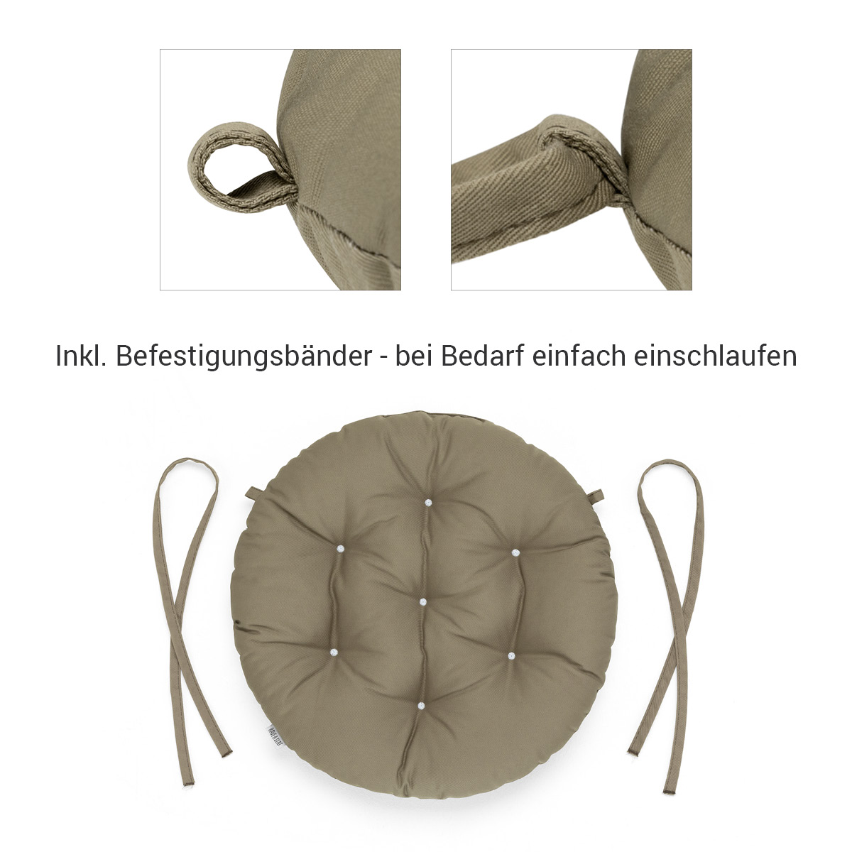- Hochwertiges, modernes Stuhlkissen mit Bändern.